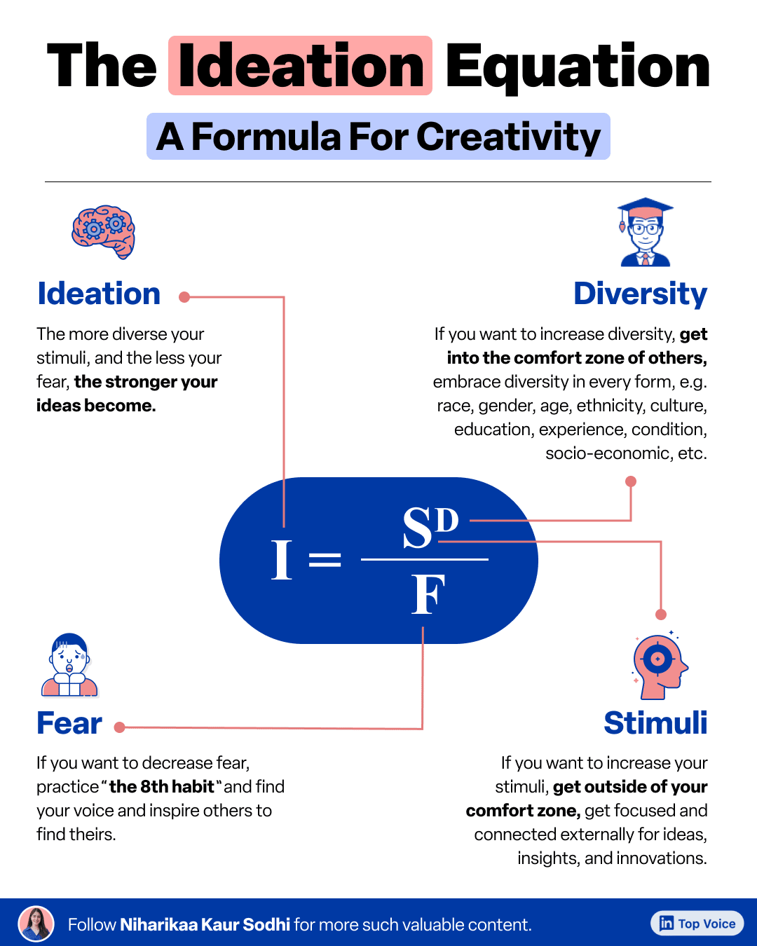 It is I = S^D/F, which is ideation is equal to stimuli raised to the power of diversity divided by fear.